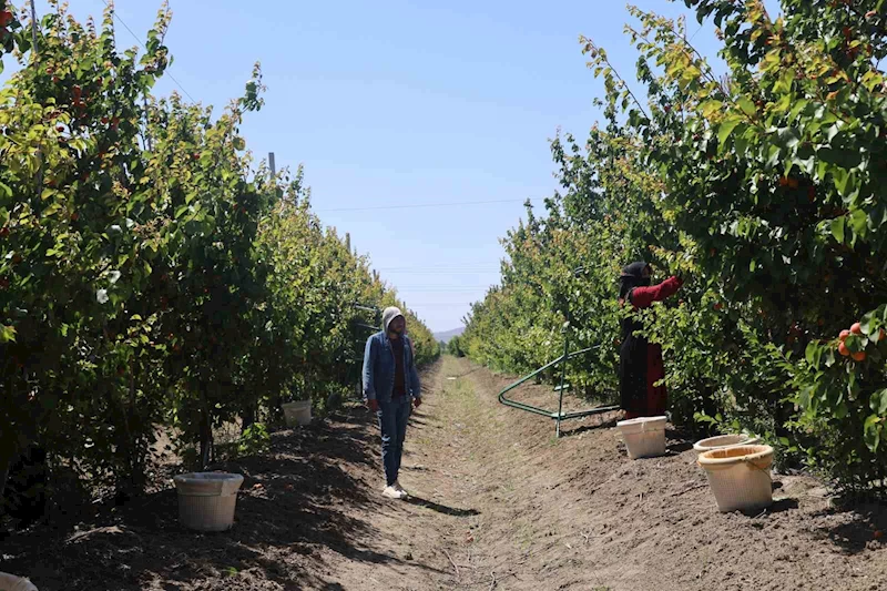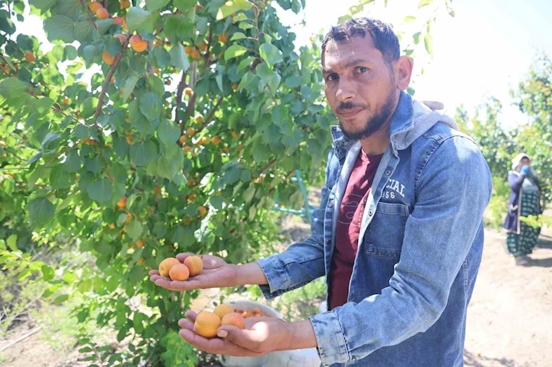 60 dönümlük bahçede yaklaşık 100 ton yaş kayısı hasadı beklediğini ifade eden genç çiftçi Adnan Abay, "Genç yaşta çiftçilik ve toprağa emek vermek güzel, toprağa verdiğin emeği geri alabilmek güzel. 3 yıldır bu işle uğraşıyorum, burada kayısı hasadımızı yapıyoruz. Hasadımız güzel gidiyor. Burada 60 dönümlük bir arazimiz var. Flopria, orta erkenci çeşidimiz var ve buna rağmen hasadımız iyi gidiyor. Erkenci çeşitlerimizi don vurdu. Orta erkencide çok bir sıkıntı yaşamadık. Şu an hasadımıza iki üç gündür devam ediyoruz. Bugün üçüncü günümüz. Meyvelerimiz kızardıkça meyvelerimizi topluyoruz. Geçen yıla göre hasadımız biraz daha iyi durumda. Ağaçlarımız gelişti ve büyüdü. Dona rağmen yine ağaçlarımızda çiçek dökülmelerimiz oldu ama çok şükür hasadımız ve verimimiz iyi duruma geldi. Kaliteli meyve yetiştirmenin derdindeyiz. Elimizden geldiğince de güzel meyve yetiştirmeye çalışıyoruz. Şu an kayısının bahçeden çıktığı fiyat 30 ila 35 TL arasında oynuyor. Meyvenin kalitesine göre değişiyor. Kayısı pazarlarda 60 ila 70 TL arasında fiyatlar değişiyor. Hasadımız bir haftaya kadar sürmeye devam edecektir. Meyve kızardıkça meyvelerimizi alıyoruz ve topluyoruz. Burası 60 dönüm ve 5 bin ağacımız var. Biz ortalama buradan 80 ila 100 ton kayısı toplamayı bekliyoruz" ifadelerini kullandı.