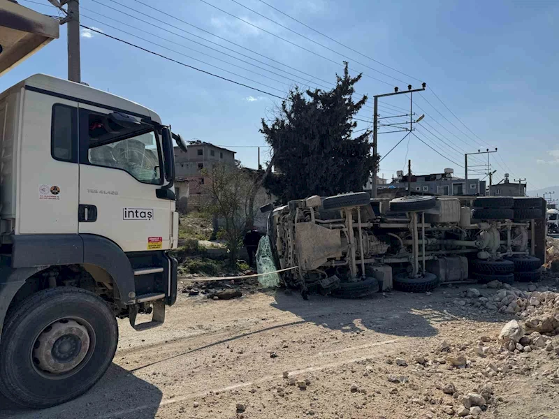 Antakya’da devrilen hafriyat kamyonunun sürücüsü yaralandı