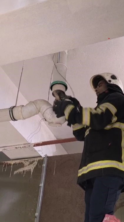 Reyhanlı ilçesi Yenişehir Mahallesi'ndeki öğrenci yurdunda boru içinden gelen miyavlama sesini duyan vatandaşlar durumu itfaiye ekiplerine bildirdi. İhbar üzerine olay yerine Hatay Büyükşehir Belediyesi itfaiye ekipleri sevk edildi. Kısa sürede bölgeye gelen ekiplerin müdahalesiyle boru içinde mahsur kalan yavru kedi kurtarıldı. Kurtarılan yavru kedi, beslenme ve sağlık kontrolünün ardından doğaya bırakıldı.
