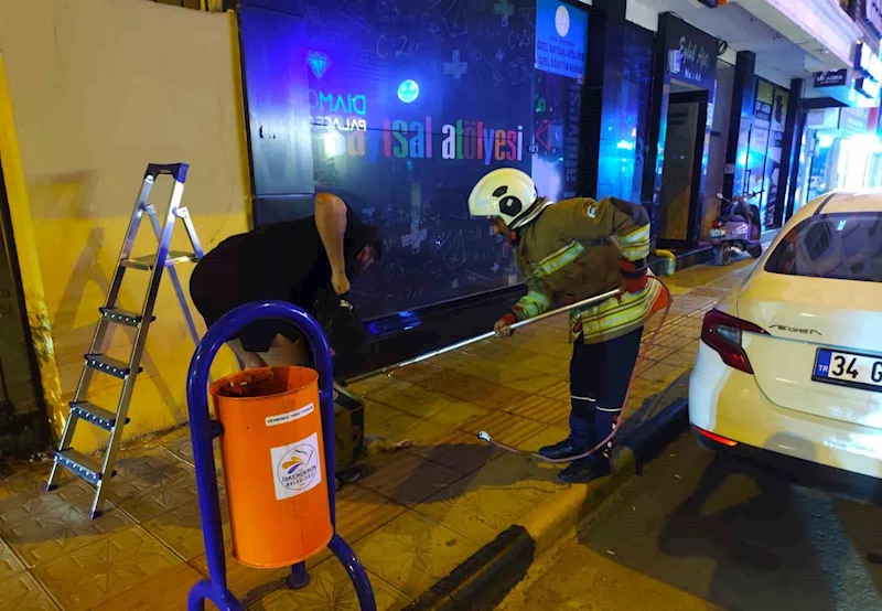 Demir korkulukta mahsur kalan kediyi itfaiye kurtardı