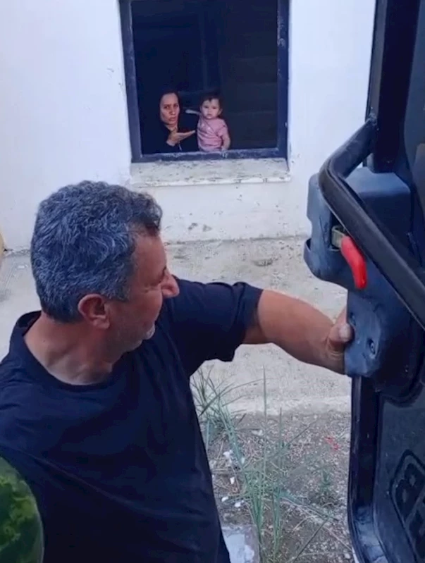 Teşekkür eden anne daha sonra bebeğini kurtaran iş makinesi operatörüne karpuz hediye etti.