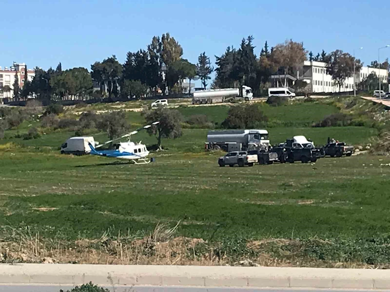 Mersin'in Tarsus ilçesinde boş alana inen bir helikopteri görenler gözlerine inanamadı.