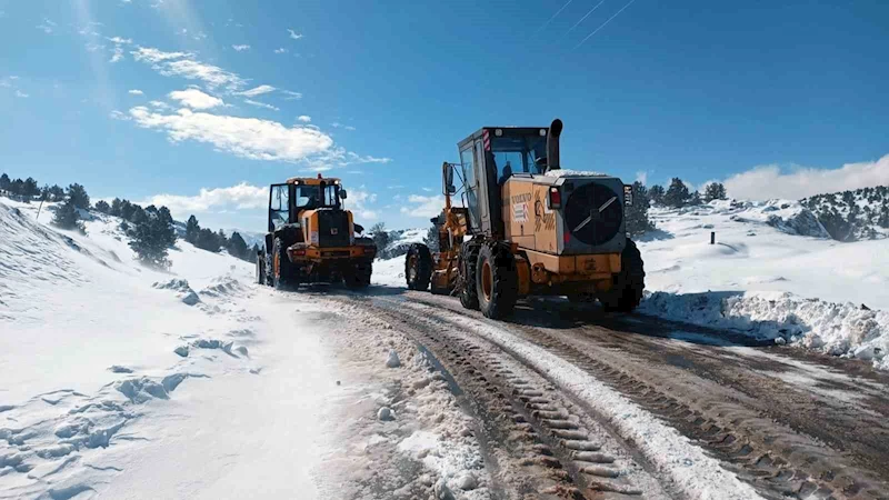 Kahramanmaraş'ta kar nedeniyle kapanan yollar büyükşehir belediyesi ekiplerinin çalışmasıyla yeniden açılıyor.
