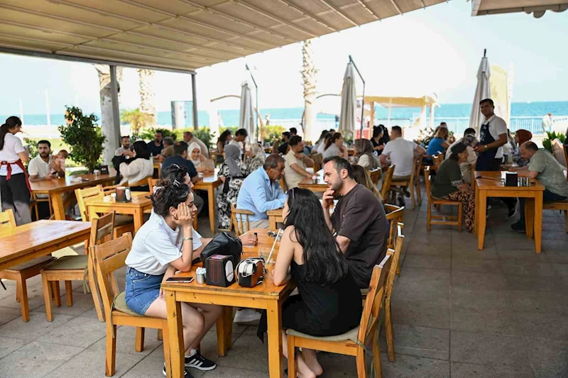 Mersin’de bayramda sahil kafelerine yoğun ilgi