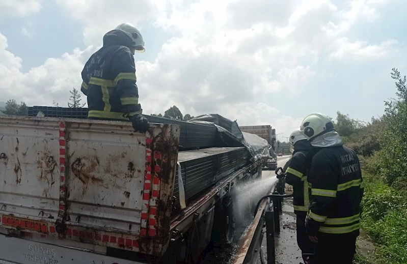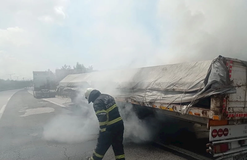 Seyir halindeki tırın dorsesinden alevler yükseldi