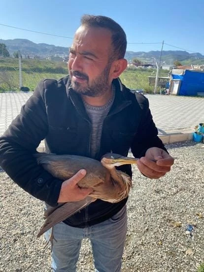 Hatay'da yol kenarında yaralı halde bulunan ergüvani balıkçıl kuşu rehabilitasyon merkezi yetkililerine teslim edildi.