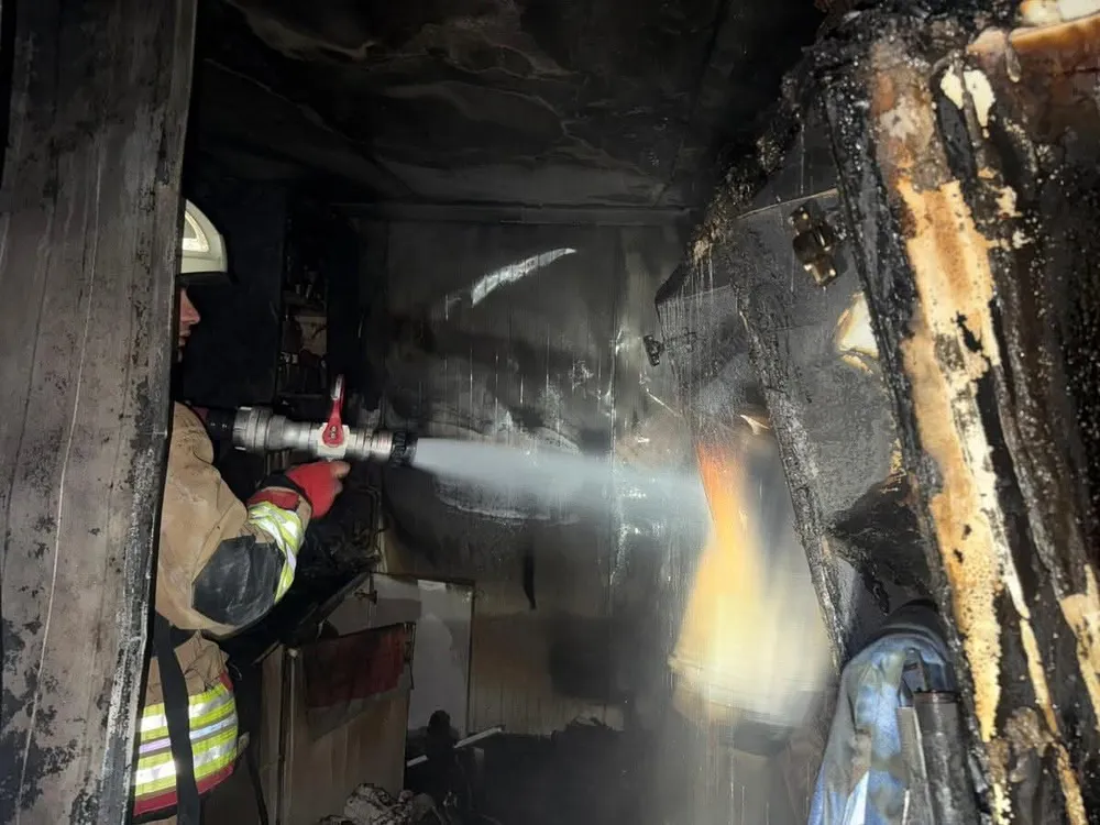 Antakya'da bir depremzede ailesinin yaşadığı konteyner, çıkan yangın sonucu kullanılamaz hale geldi.