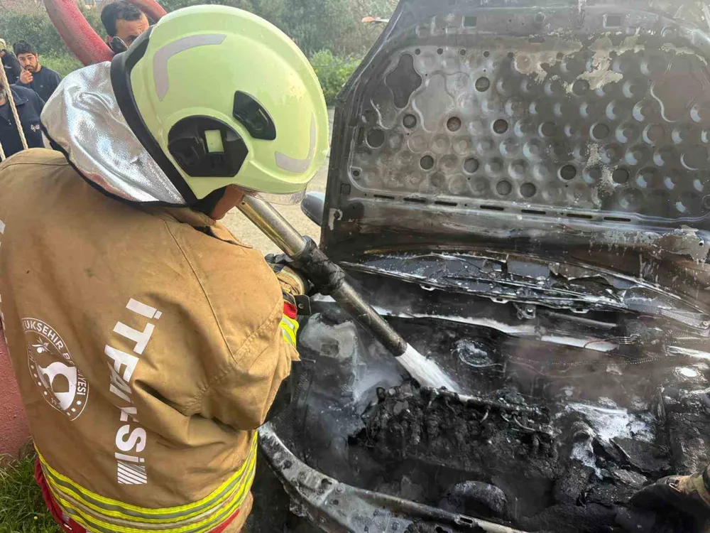 Hatay'ın Antakya ilçesinde, Odabaşı Mahallesi'nde park halindeki bir Opel marka otomobilin motor kısmından alevler yükseldi. Aniden başlayan yangın, aracı hızla sardı.