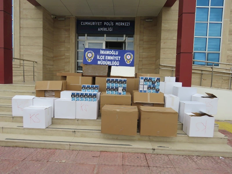 İmamoğlu İlçe Emniyet Müdürlüğü tarafından yapılan çalışmada, İ.C.D. isimli şüpheli gözaltına alınırken şüpheli polis ilçe emniyet müdürlüğüne götürüldü. Otomobilde 14 koli içerisinde 28O bin kaçak sigara ve 150 bin kaçak makaron ele geçirildi.