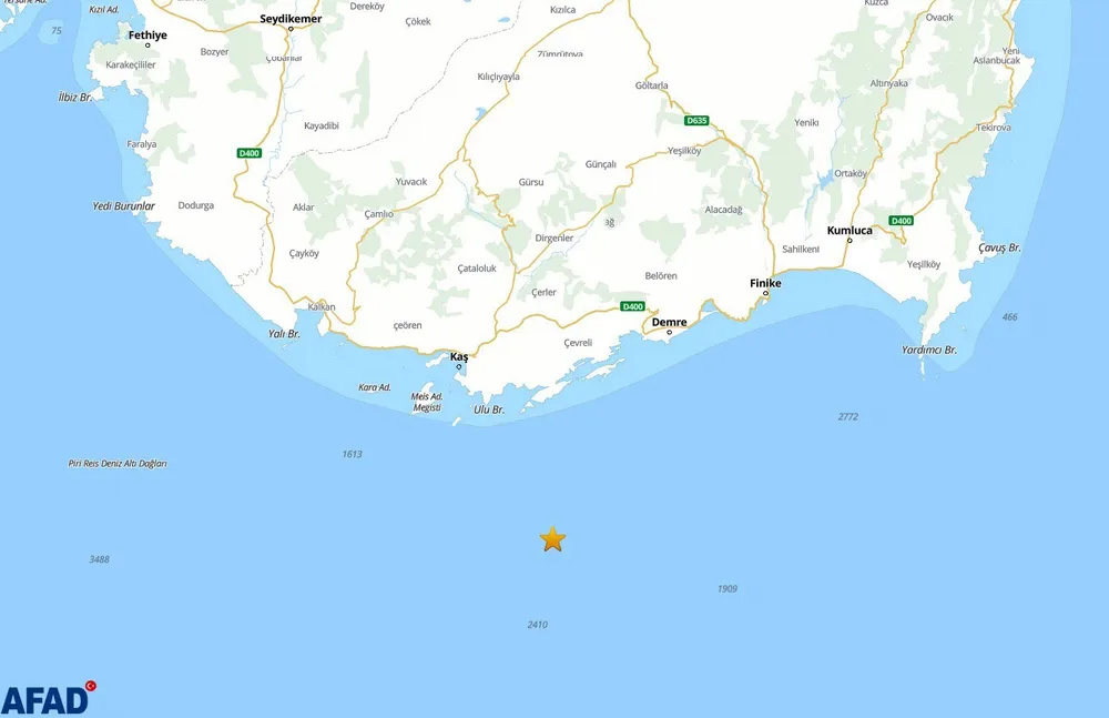 AFAD verilerine göre, Antalya'nın Kaş ilçesi açıklarında 3.8 büyüklüğünde bir deprem kaydedildi.