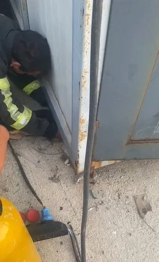Hatay’ın Samandağ ilçesinde konteynerin altında sıkışıp mahsur kalan yavru köpek, itfaiye ekipleri tarafından kurtarıldı.