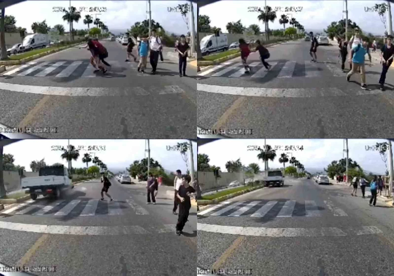 Mersin’de geçen yıl okul çıkışında bir öğrencinin hayatını kaybettiği, bir öğrencinin de ağır yaralandığı kazanın görüntüleri ortaya çıktı. Belediye otobüsünün ön güvenlik kamerası tarafından kaydedilen görüntüde; iki çocuğun okul çıkışında yaya geçidinden el ele tutuşarak karşıya geçmeye çalışırken, Coşkun T.’nin kullandığı kamyonetin çarptığı an yer aldı