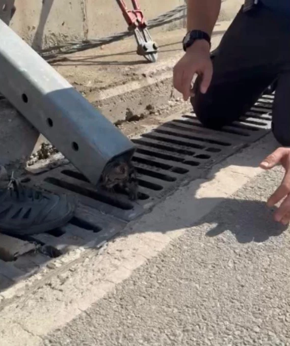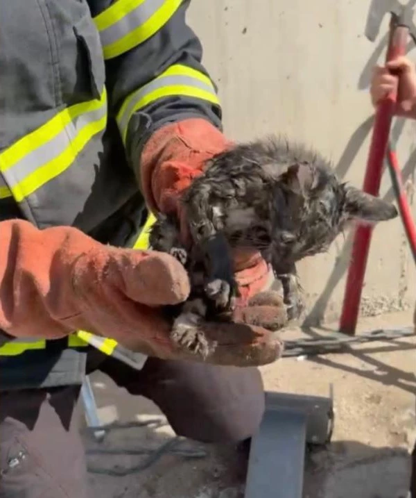 Osmaniye'de alt geçitteki refüj demirinin içinde sıkışan yavru kedi, itfaiye ekiplerinin müdahalesiyle kurtarıldı.