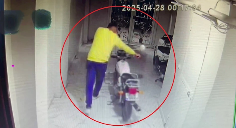 Reyhanlı ilçesi Yeni Mahalle'de geçtiğimiz günlerde Vahit Can Gülşen isimli vatandaşa ait motosiklet, yaşadıkları apartmanın içerisinden çalınmıştı. Apartman içerisine giren M.B.'nin motosikleti çalarak uzaklaştığı anlar güvenlik kamerasına yansımıştı. Görüntülerde apartmana girip motosikleti alarak rahat bir şekilde binadan ayrılan M.B.'nin başka bir evin balkonunda asılı duran montu da ipten alarak motosikletle gözden kaybolduğu görülmüştü. Gülşen'in şikayeti üzerine polis olayla ilgili inceleme başlatmıştı. Hatay Emniyet Müdürlüğü ekiplerince yakalanarak gözaltına alınan M.B., çıkarıldığı mahkemece tutuklanarak cezaevine gönderildi. Çalınan motosiklet ise bulunarak sahibine teslim edildi.