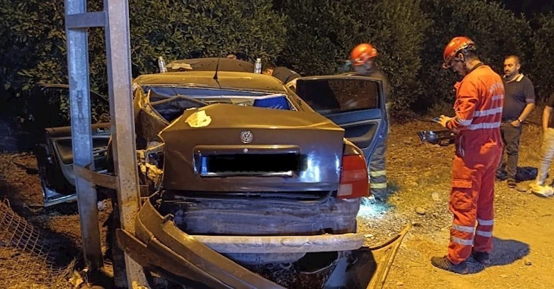 Hatay'da elektrik direğine çarparak zeytinliğe uçan otomobilin sürücüsü yaralandı.
