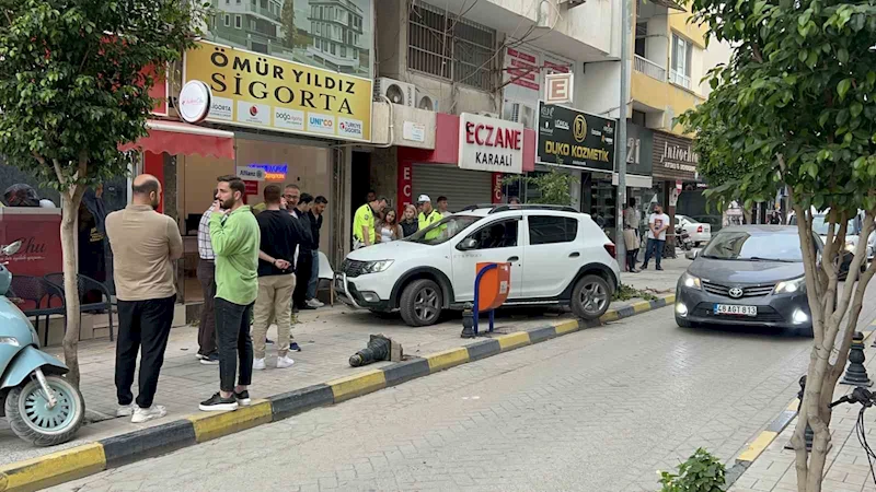 Hatay'da sürücüsünün fren yerine gaza bastığı otomobil, kaldırıma çıktı, bir iş yerine metreler kala durdu.